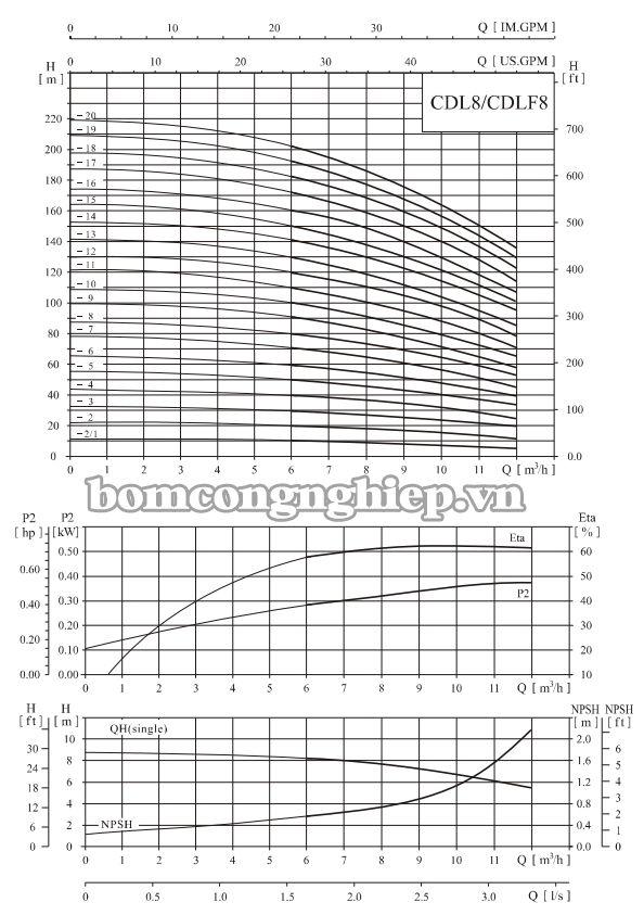 Biểu đồ lưu lượng cột áp của máy bơm trục đứng CNP CDL 8-6