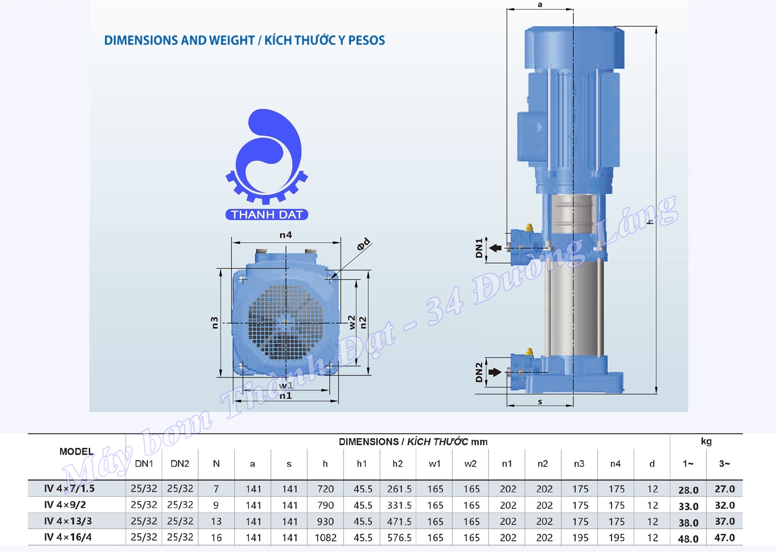 Máy bơm trục đứng Inter IVM 4×7/1.5 1.5HP